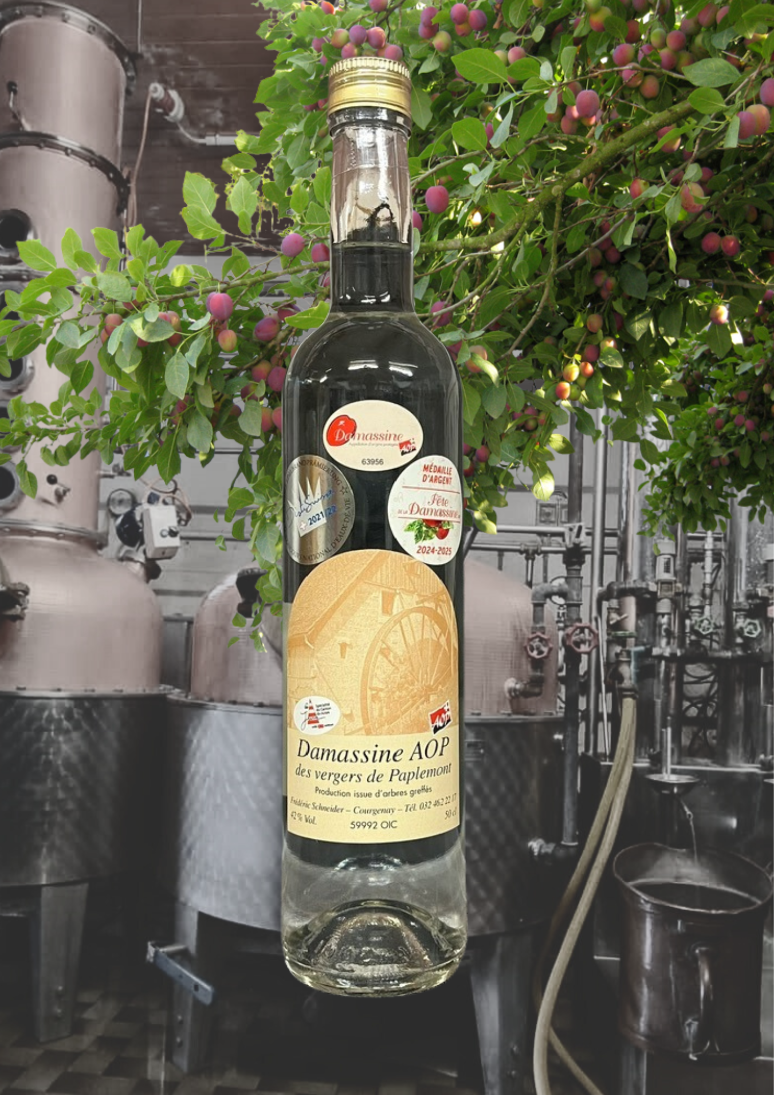 Distillée avec passion à Cornol, notre eau-de-vie à la Damassine AOP est issue des fameuses petites prunes rouges « damassons », cultivées exclusivement dans le Jura suisse.